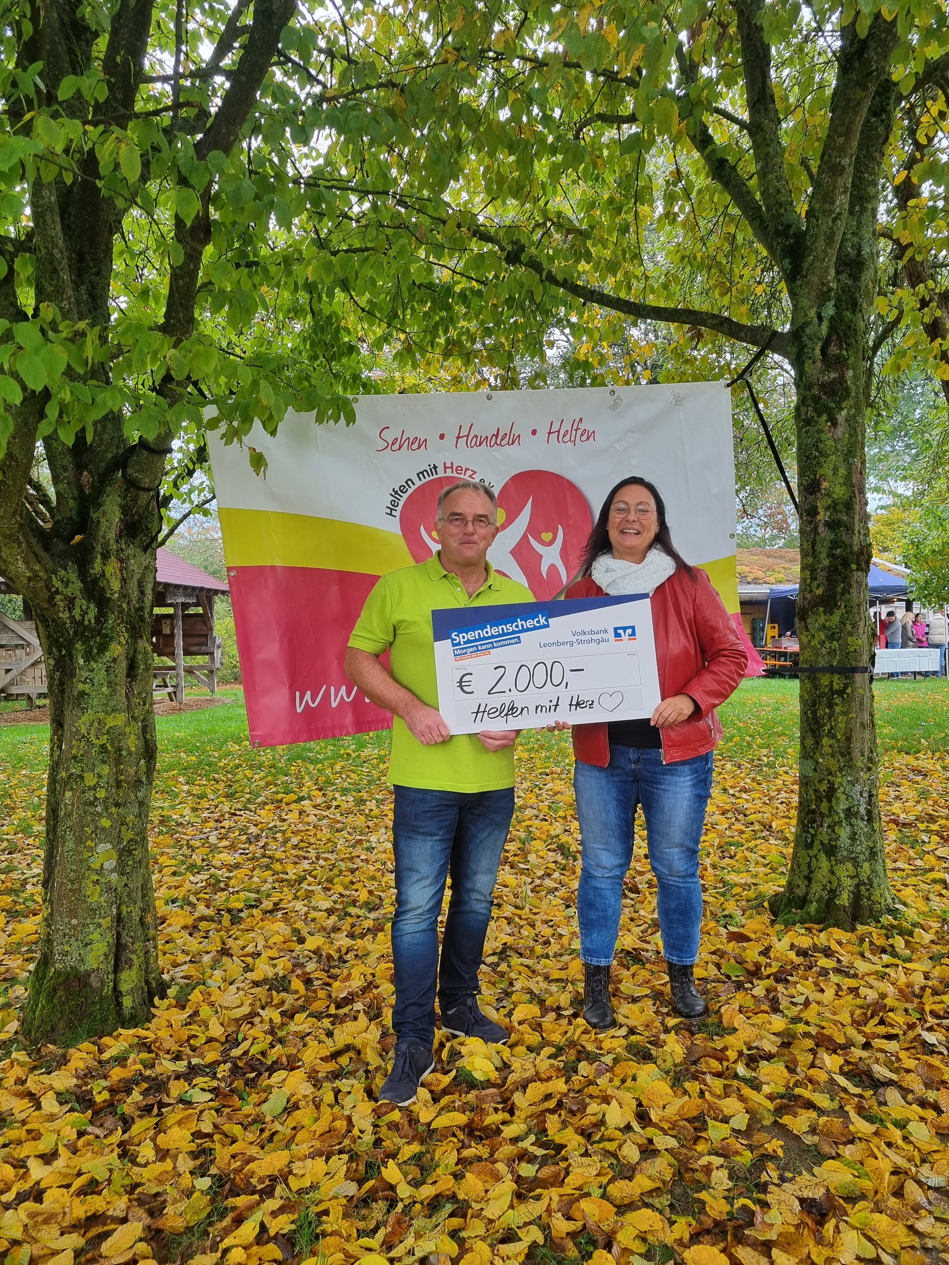 Eine besondere Überraschung hielt Frau Zwilling von der Volksbank Leonberg-Strohgäu für uns parat und überreichte unserem Vorsitzenden Frank Bauer einen Scheck in Höhe von 2.000 Euro. Das Geld kommt unserem Projekt "Ein Auto für Norman" zugute. Ein herzliches Dankeschön für diese großzügige Spende!